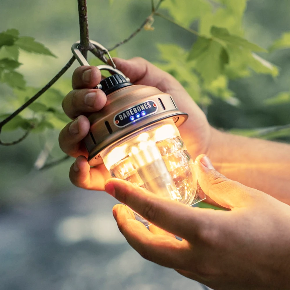 Our Barebones Beacon light comes with a smooth dimming feature that allows you to completely brighten your surroundings or simply set the mood. This portable light easily hangs with its carabiner top or stands on its sturdy base. The Beacon comes with a 30-inch cord for its rechargeable battery—which lasts 200+ hours on low or three hours on high. And thanks to a convenient battery life indicator, you’ll never be left in the dark.