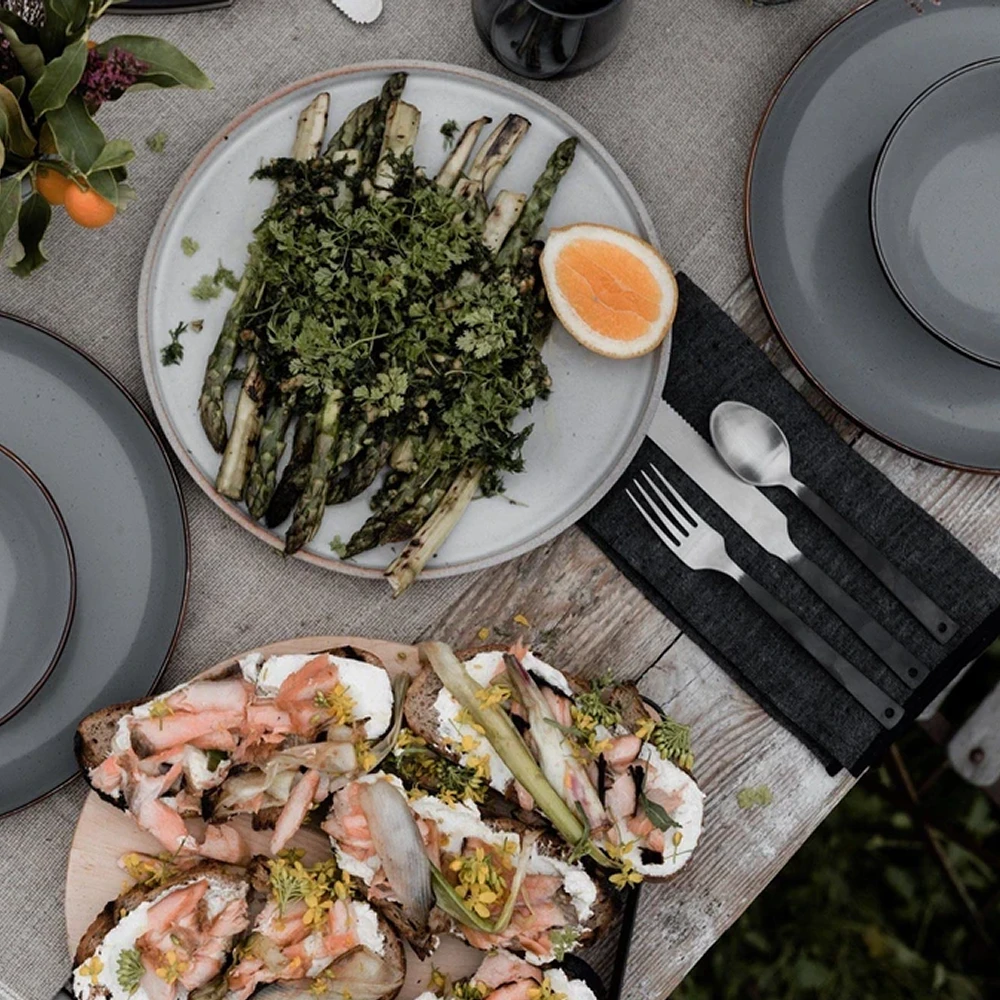 Minimalist, utilitarian, and modern. The Flatware Set brings something different to the table. Choose from Polished or Matte finishes for a one-of-a-kind look that plays beautifully against our enamelware.