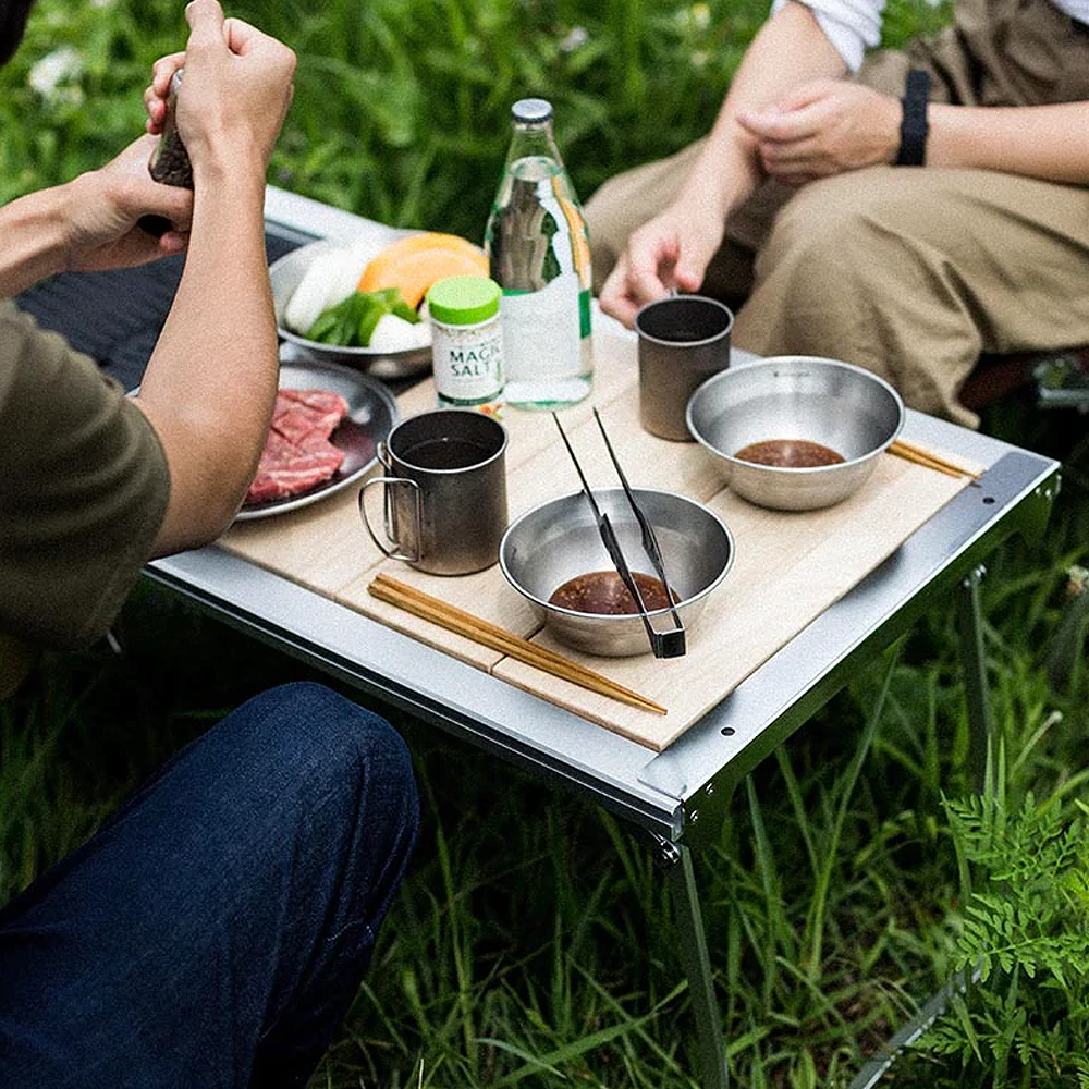 Designed in Japan, the laminated wood Entry IGT Table is for those beginning their camp kitchen customization. Use the Entry IGT Table at home or outside for a low height cooking and dining space. Add preferred inserts into the three units of space or simply use with the included wood surfaces as a standalone table. The Entry IGT Table features foldable legs for compact storage. Pair the Entry IGT Table with the Red Folding Chair or Low Beach Chair.